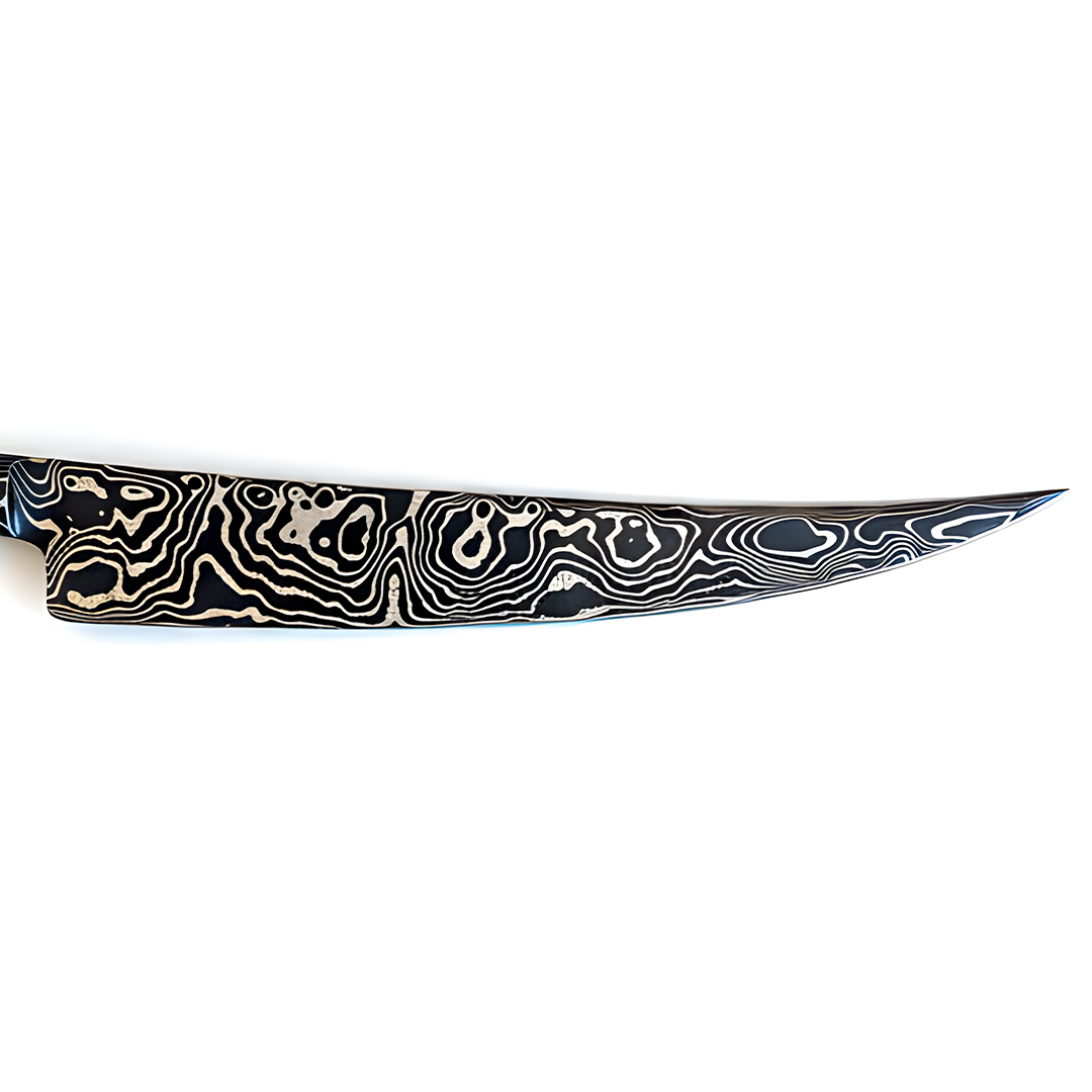 A Gaúcha em damasco aleatório une tradição e artesania em uma peça que carrega identidade própria. O padrão aleatório do damasco cria desenhos imprevisíveis que percorrem a lâmina de 9 polegadas, tornando cada detalhe único e irrepetível. A espessura de 5 mm oferece firmeza na medida certa, transmitindo equilíbrio e segurança no manuseio.